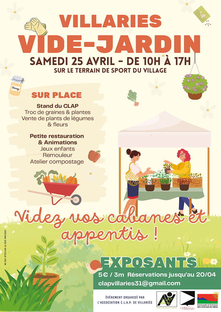 L’association CLAP organise un vide-jardin le samedi 25 avril, de 10h à 17h, sur le terrain de sport du village.